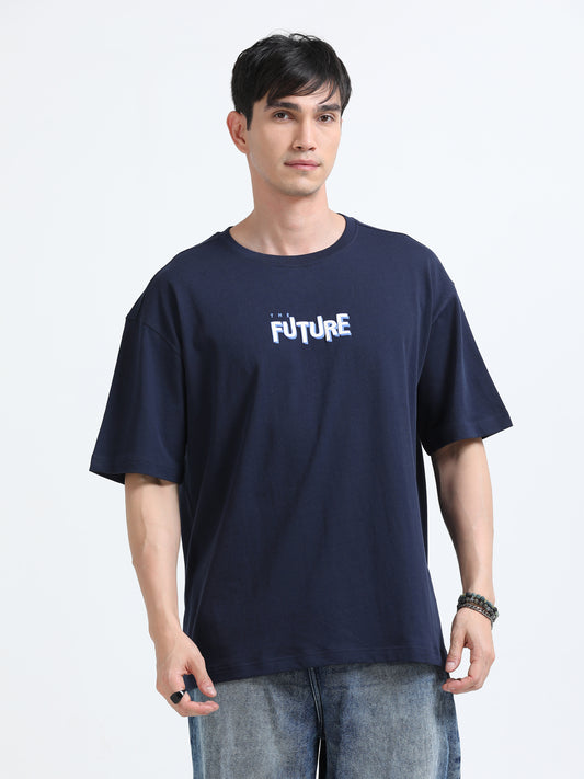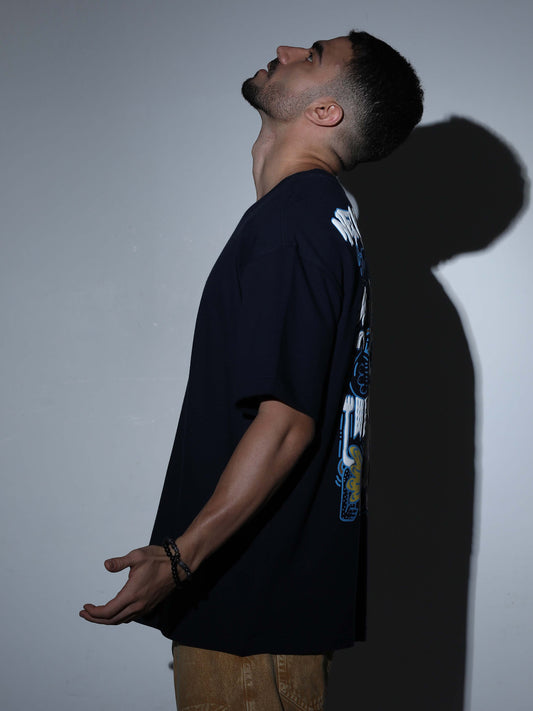 Bold Statement Oversized Graphic Tee – Heavy Jersey Cotton-Mid Night Blue