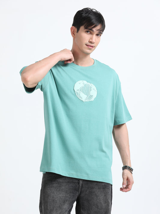 Bold Statement Oversized Graphic Tee – Heavy Jersey Cotton-Pastel Blue