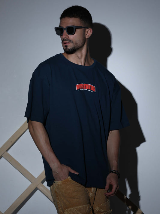 Burning Oversized T-shirt Denim Blue - OSTS-1427
